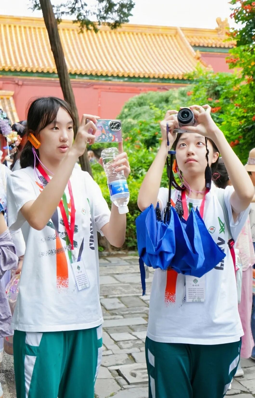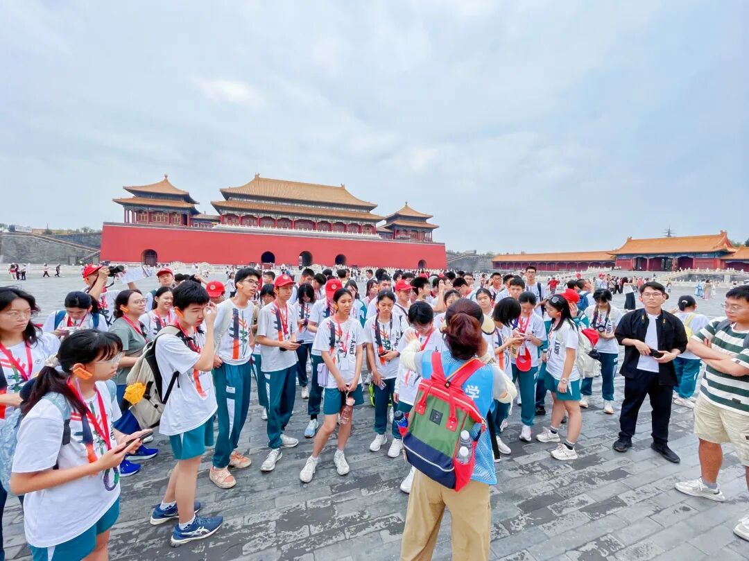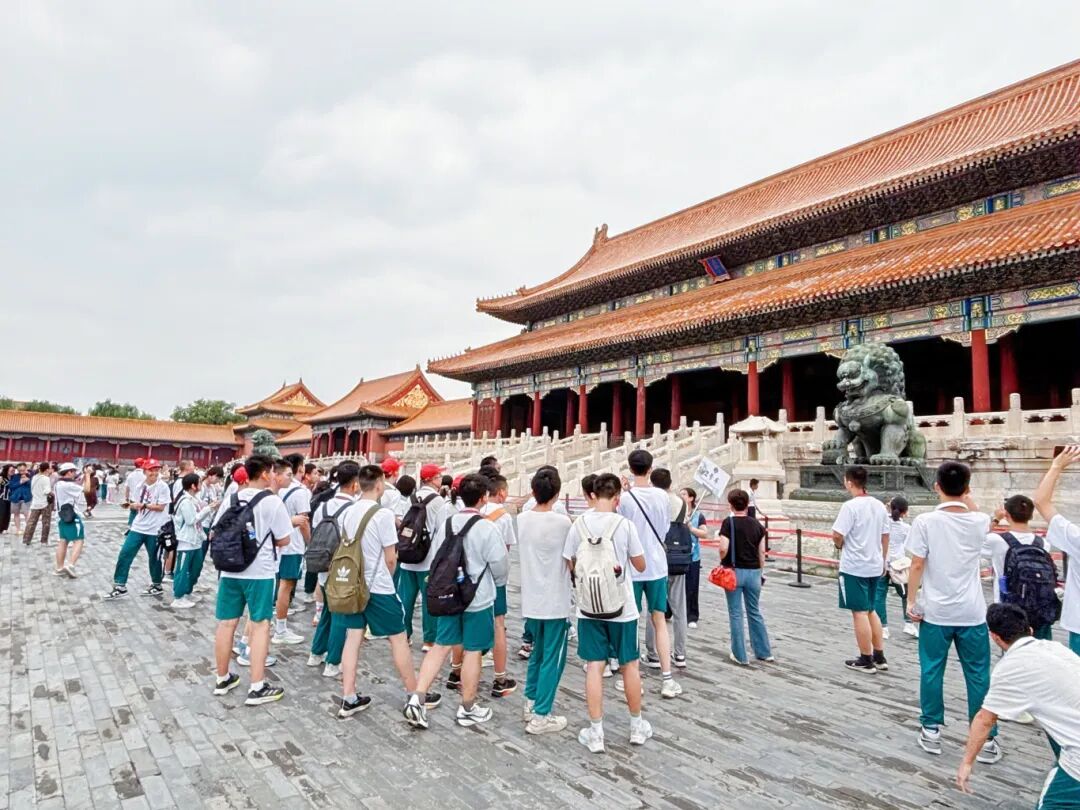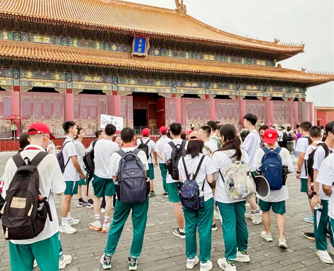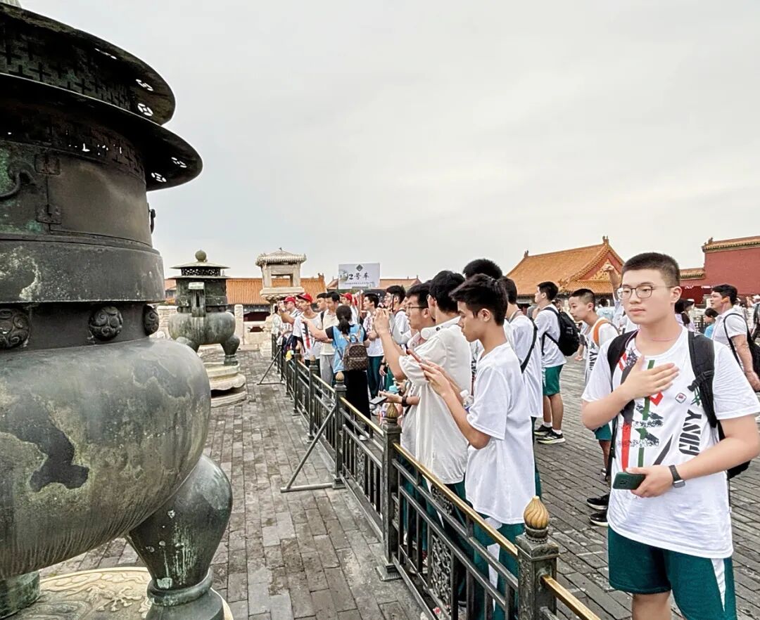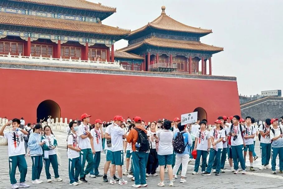 科学理性的学科思维与人文光辉相遇,15日下午,同学们参观了世界上规模最大、保存最为完整的木结构宫殿建筑群——北京故宫。他们沿着北京老中轴线一路向前,经过午门、前朝三大殿(太和殿、中和殿、保和殿)、后宫三宫(乾清宫、交泰殿、坤宁宫)再到御花园,一路聆听旧日的趣闻轶事,感受中华文化的源远流长、博大精深。