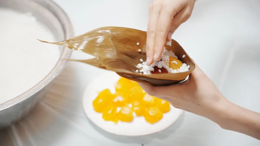 拈起两片青翠的粽叶