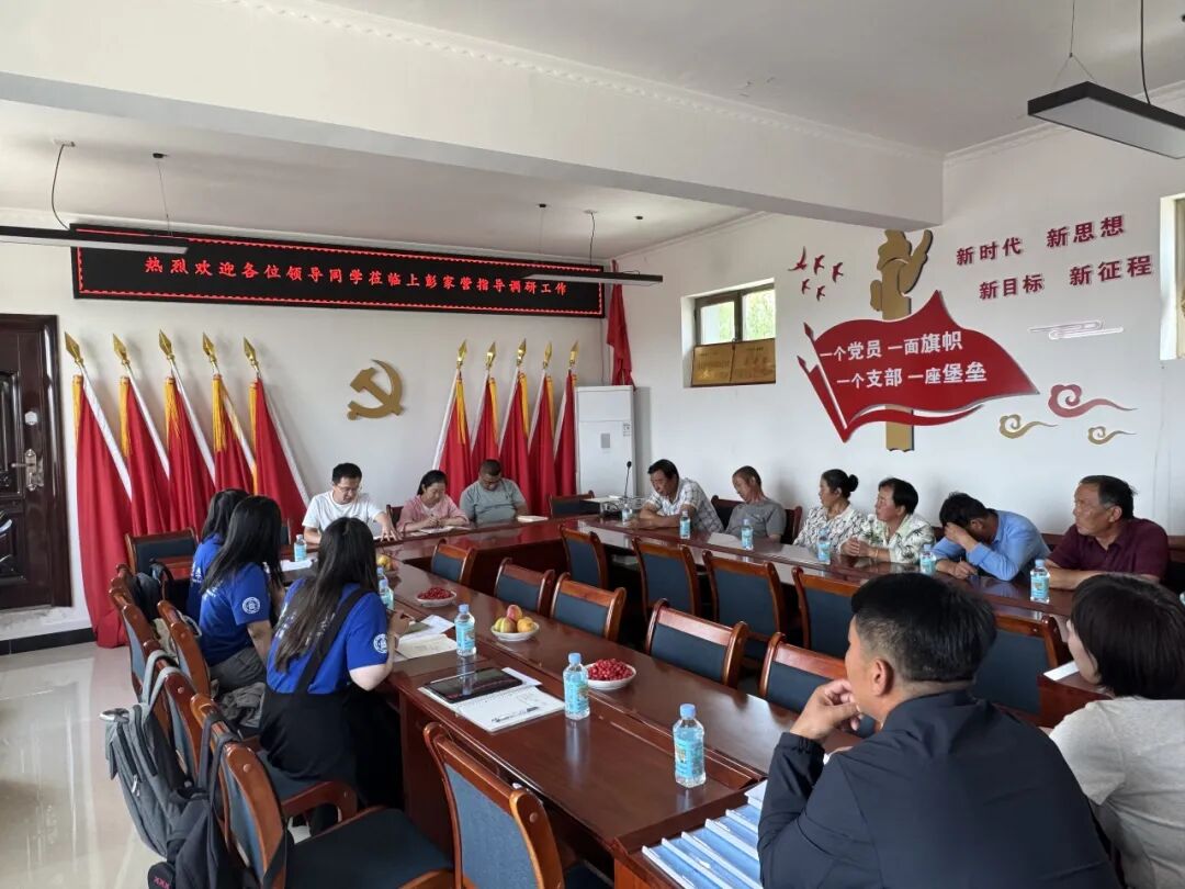 在副乡长刘永斌和金艳丽副站长的带领下,调研队成员王欣悦、郑柯欣、刘津源、张潘雨点一行前往小康营乡上彭家营村开展实地调研。上彭家营村党支部书记岳明星、村委会主任李家泉以及部分村民代表参加了此次调研交流。