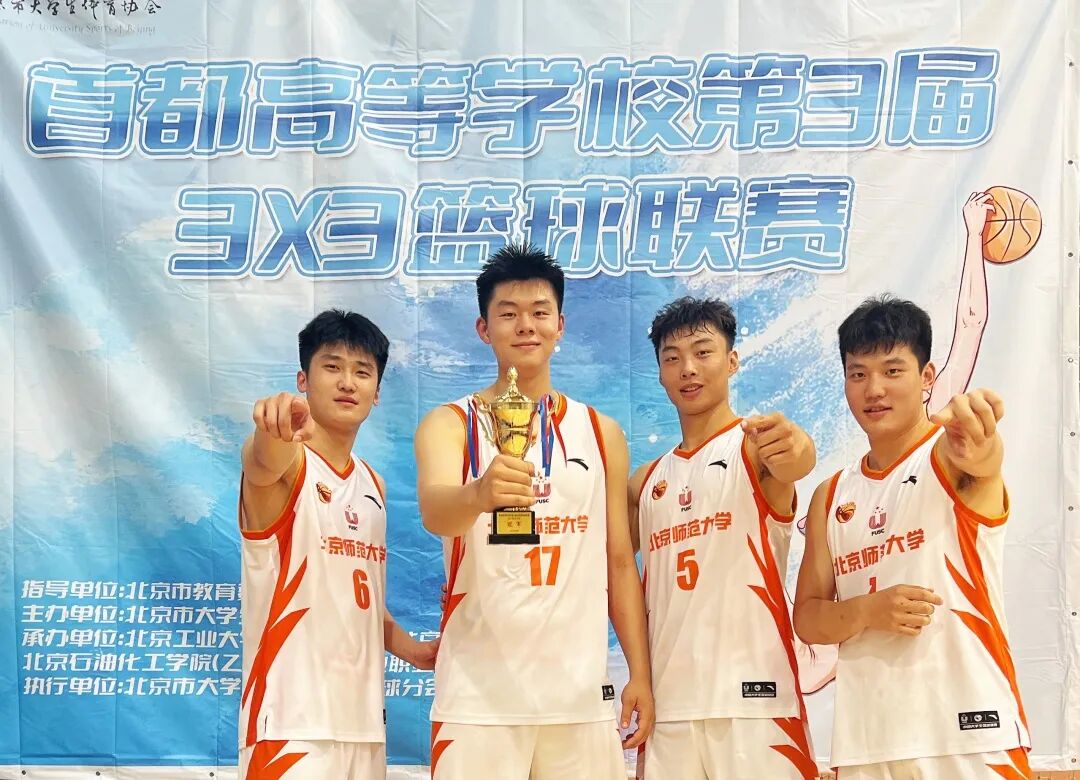 2024年6月16日,由北京市大学生体育协会主办,北京市大学生体育协会篮球分会执行的首都高等学校第3届3X3篮球联赛落下帷幕。在学校和学院领导、老师的支持与鼓励下,在主教练宋陆陆老师的悉心指导下,北京师范大学高水平男子篮球队顽强拼搏、奋勇前进,荣获首都高等学校第3届3X3篮球联赛高水平组冠军!