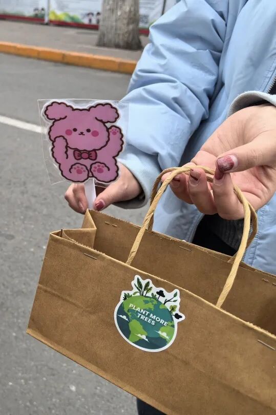 活动现场的手工环节吸引了来往行人的兴趣,纷纷踊跃参与。每个参与者都可以选择不同尺寸大小的纸袋、画笔和装饰物,亲手制作并装饰自己的“收纳宝盒”。