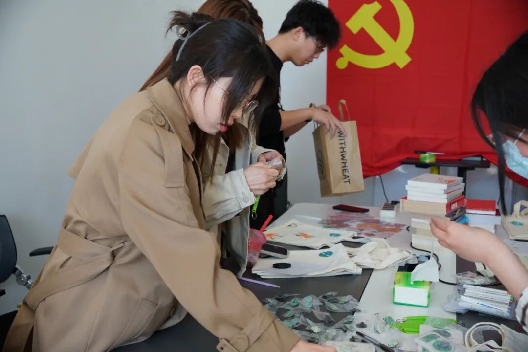 此次党日活动围绕环境保护和资源循环利用的主题,号召大家为山区孩子捐赠衣物,活动不仅帮助了有困难的山区孩子,也使参与的同学们感受到物品循环利用与助人为乐过程中带来的价值感与满足感。作为志愿者参与活动的那一个多小时里,我和其他志愿者一起引导参与的同学们创作帆布包,大家各显身手,仿佛回到了童年肆意作画的美好时光,希望我们作画时的那些欢乐可以随着衣物一起送到孩子们的手中,祝愿他们开心勇敢地走向未来。