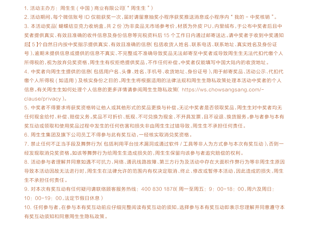 文章内容来源于公众号:周生生网上珠宝店,点此可查看原文,内容版权归相关企业所有,本网站仅供交流学习。若涉及版权问题或存在侵权情况,请及时与我们联系,我们将第一时间进行删除处理。