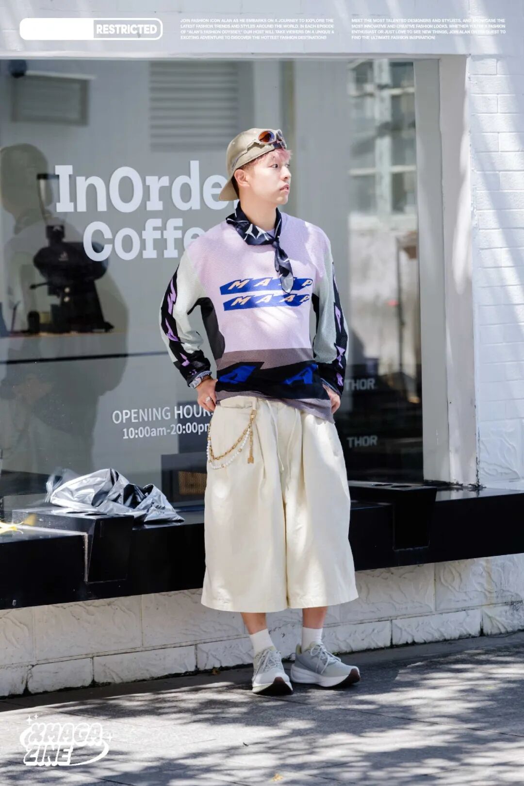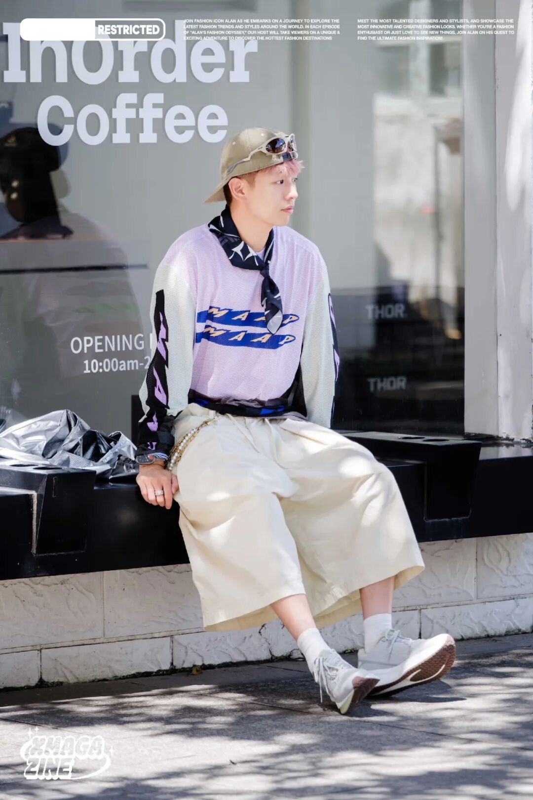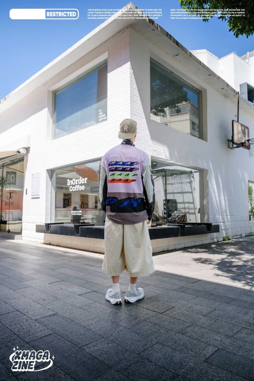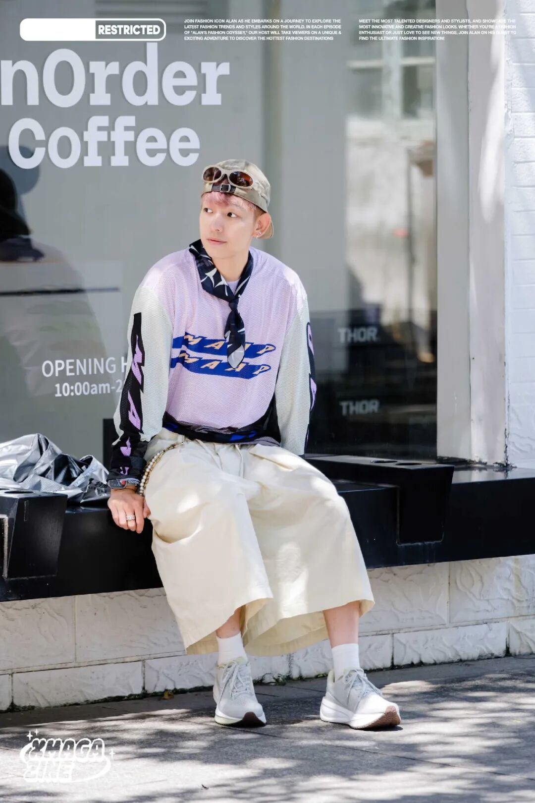 第二套造型,则更偏向日常休闲。我换上了一条白色阔腿八分裤和一件网眼长袖 tee,把青云旗舰缓震当成一双日常通勤鞋来穿。镜头切换到跑道边的咖啡小店,微风吹动衣摆,我随意坐在户外的木椅上,脚下的青云显得低调而精致。