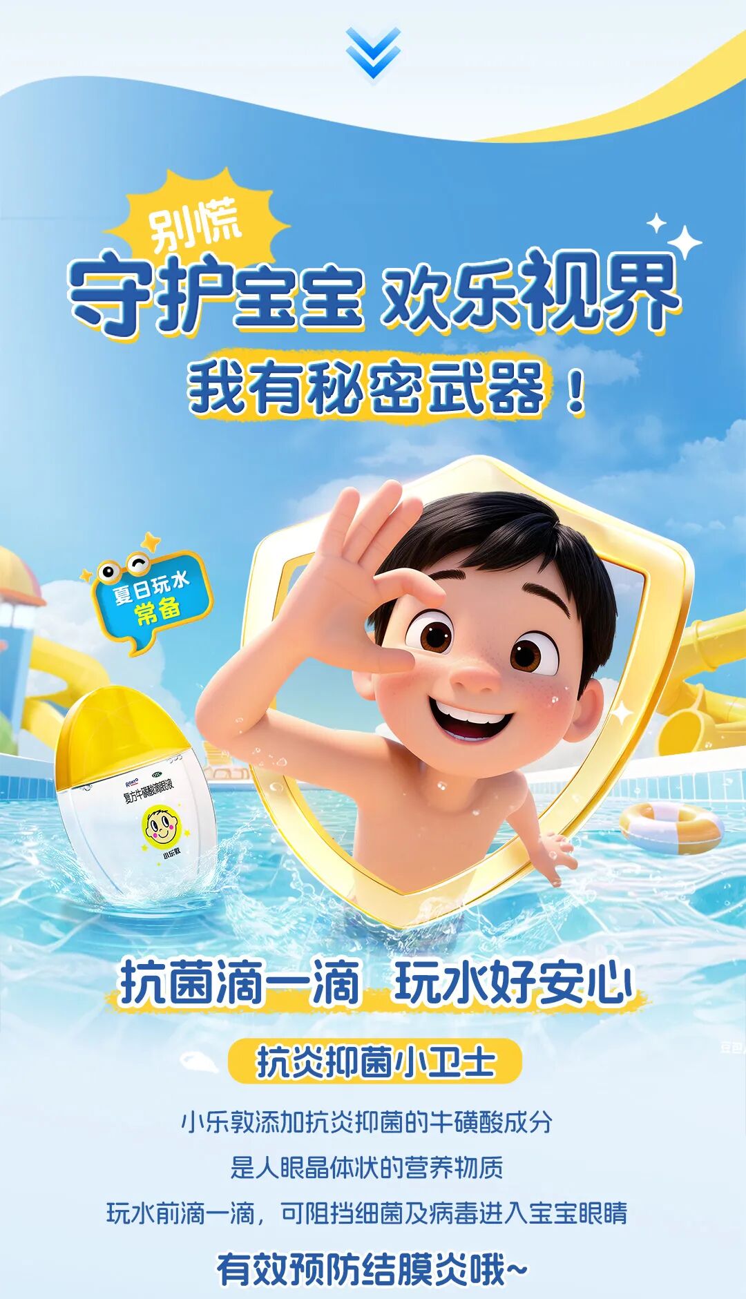 摘要:泳前泳后各一滴,给宝宝眼睛穿上“防护衣”