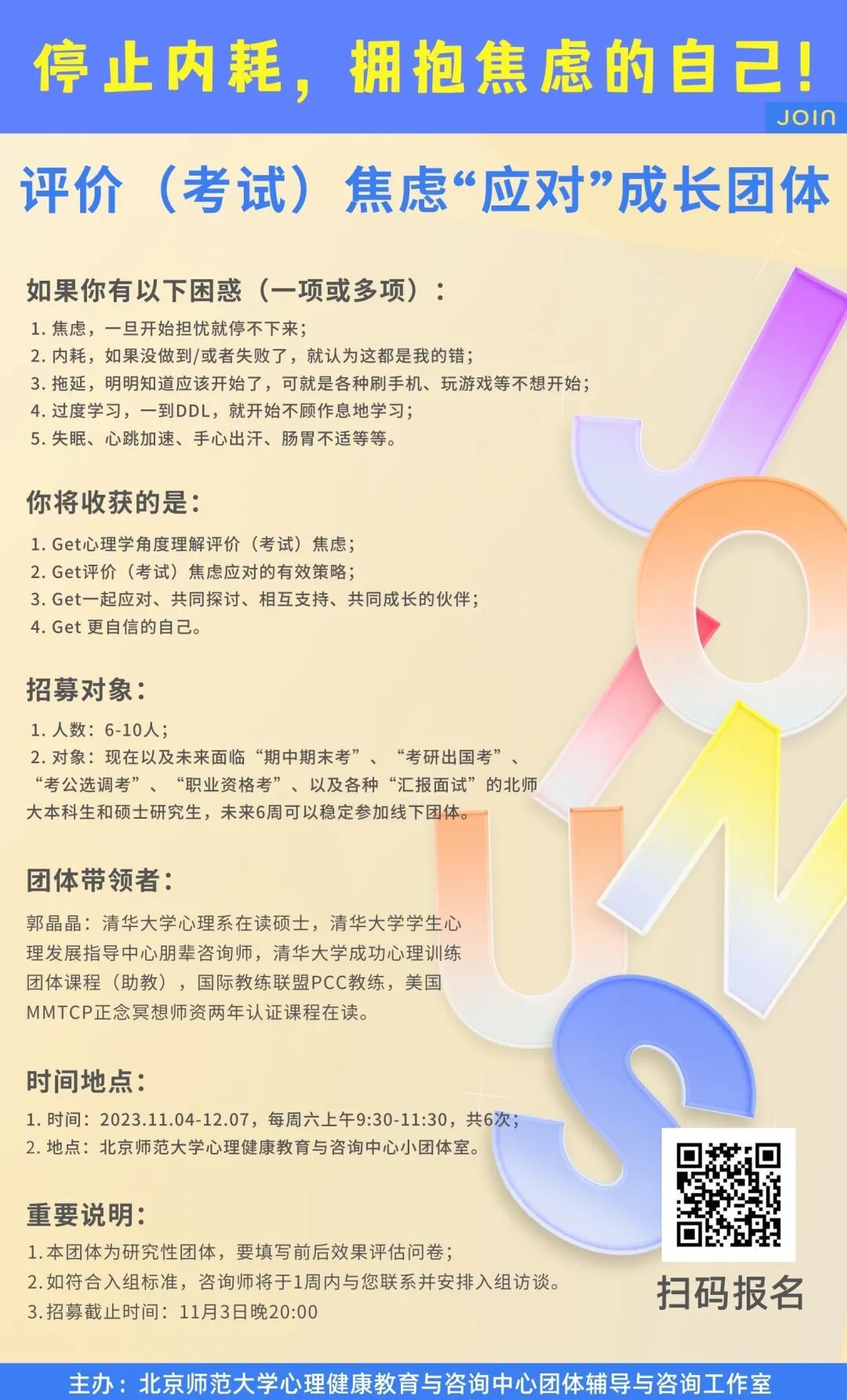 北京师范大学2023年秋季团体辅导最新招募信息来啦!快来报名吧~