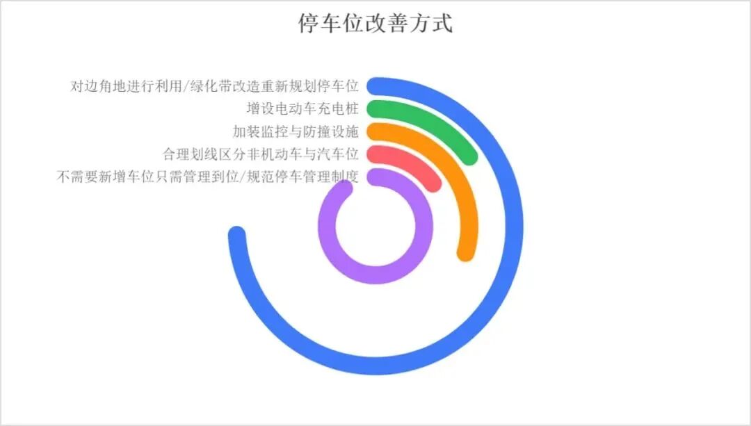 基础设施修缮(38%):地面铺装修复、停车位规范、无障碍设施