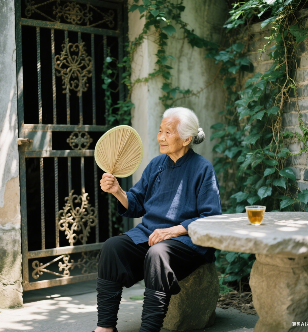 坐在家门口的奶奶