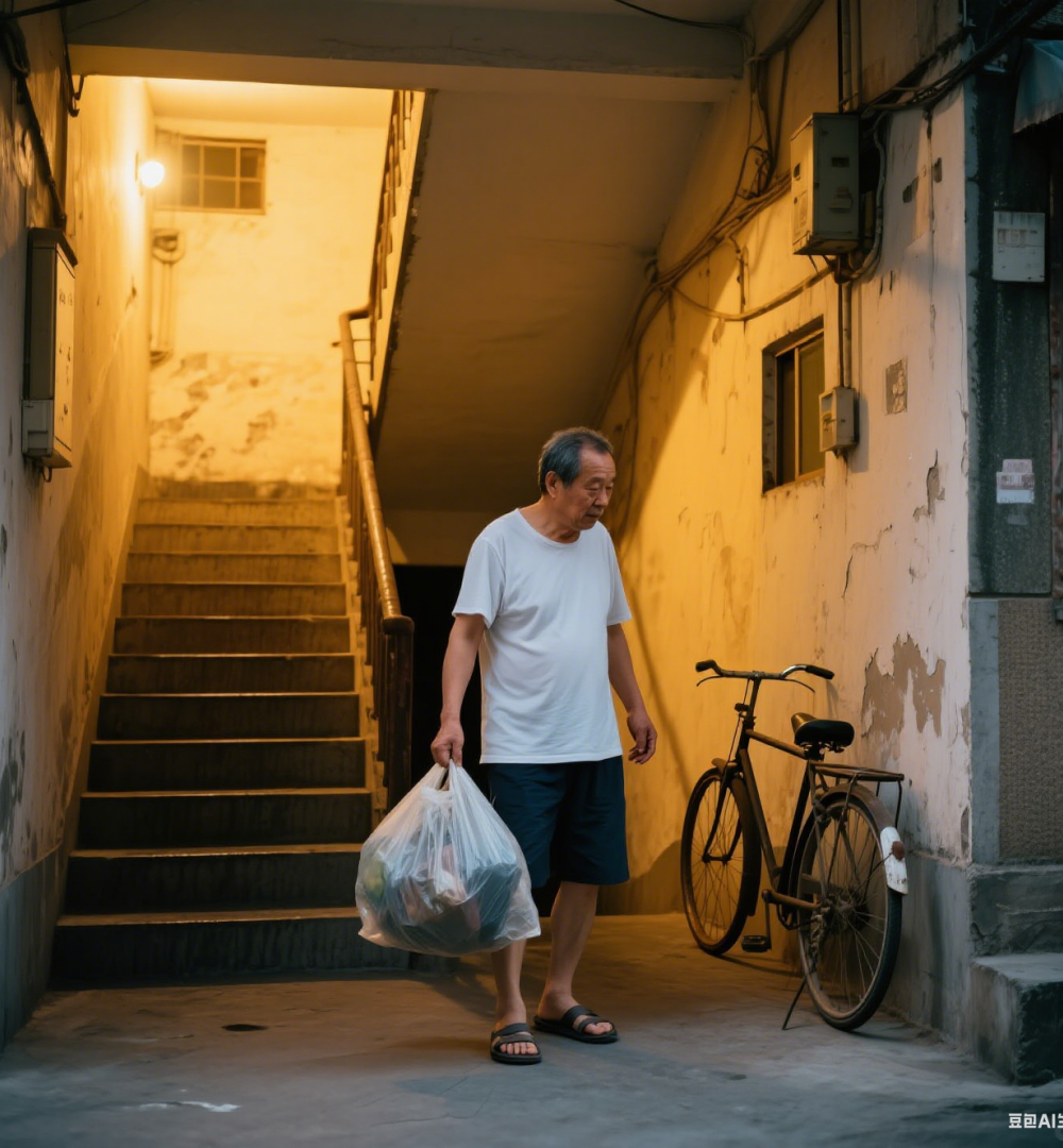 下楼倒垃圾的中年大叔