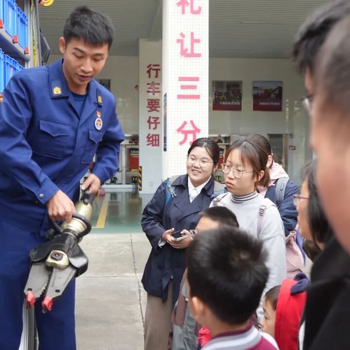 从常规的水枪、泡沫灭火器,到专门用于救助被门夹住儿童的特殊工具,每一件器材都凝聚着消防战士对生命的尊重与守护。通过消防员的详细讲解与现场演示,师生们对消防安全知识有了更加全面、深入的理解。