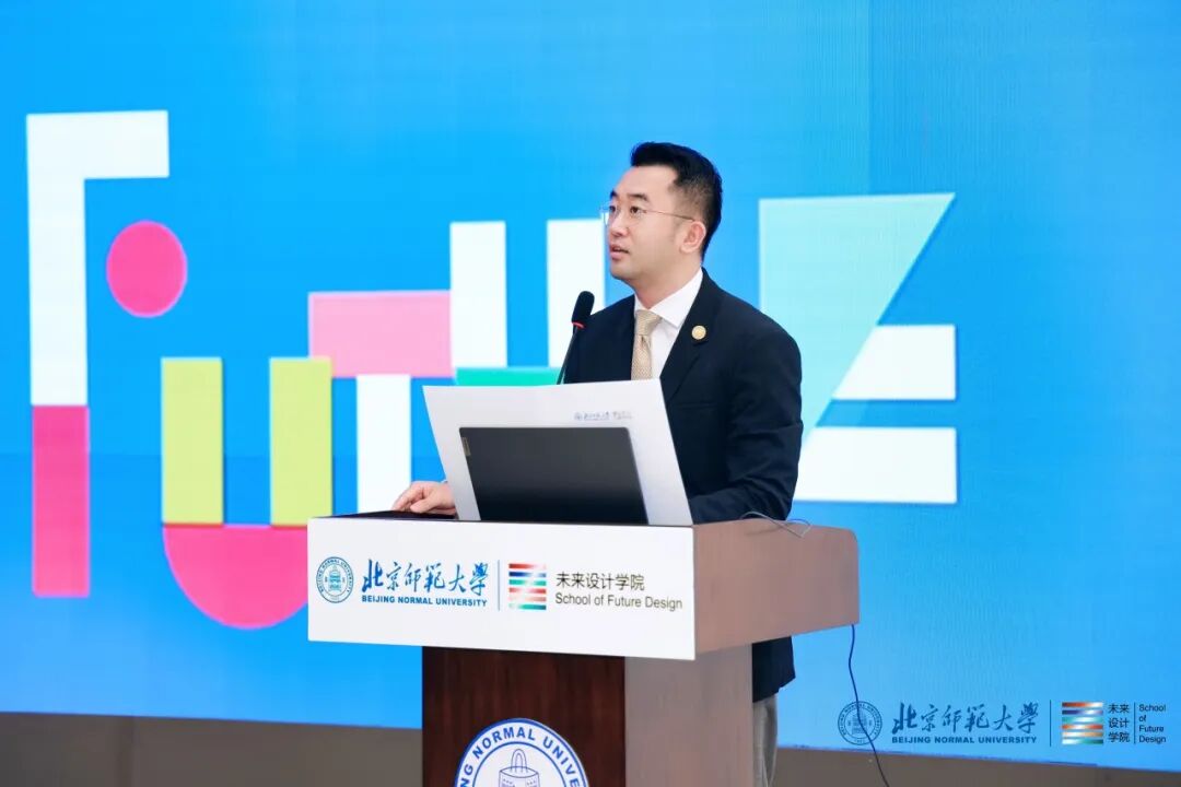 典礼伊始,全体师生起立奏唱校歌。随后,党支部书记宁少林老师致辞。他表示,北京师范大学具有120年的办学历史,这为未来设计学院的建设提供了很好的办学基础及发展动力。未来设计学院的每一位同学都是学院的开拓者,是学院国际影响力、社会影响力的重要组成部分,都将成为学院的亮丽名片。希望同学们能够珍惜学院提供的学习条件,努力提升自己的研究能力和设计服务能力。