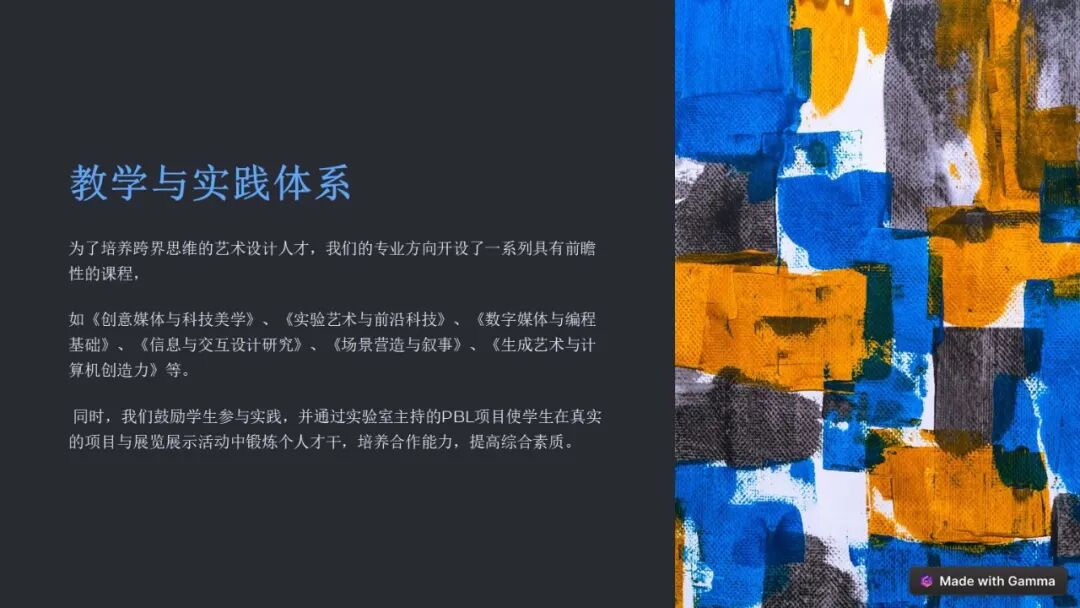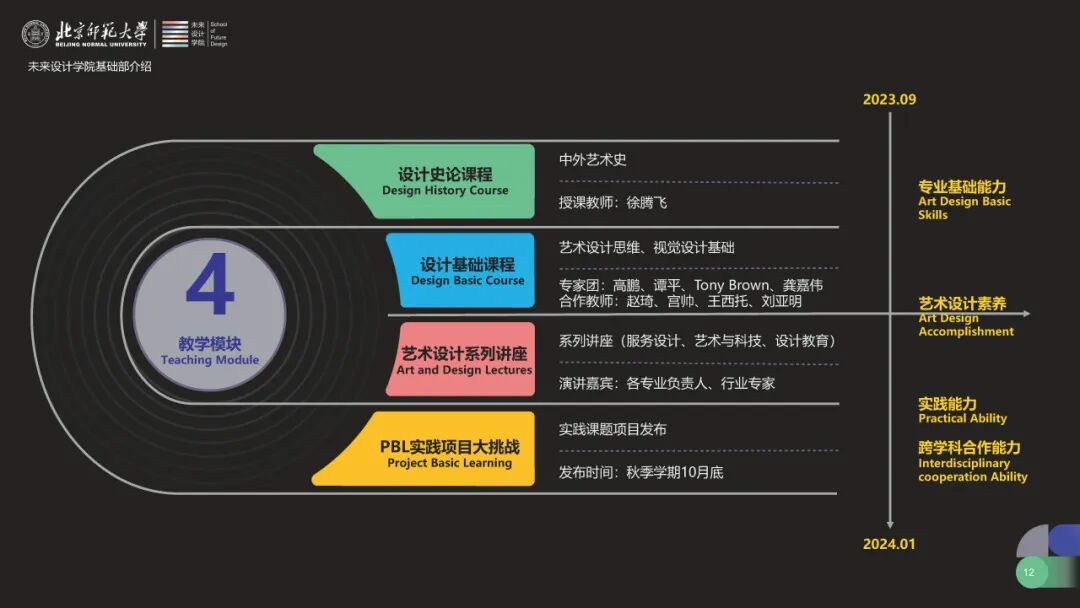 基础部负责人赵琦老师详细介绍了基础部的课程情况;服务设计专业方向负责人王西托老师、数字媒体艺术专业方向负责人周天歌老师、设计教育专业方向负责人王馨月老师分别介绍了各专业方向的课程内容、培养目标等;PBL项目负责人钟旭老师介绍了学院的PBL模式教学特色以及过去一年学院的PBL项目教学成果。