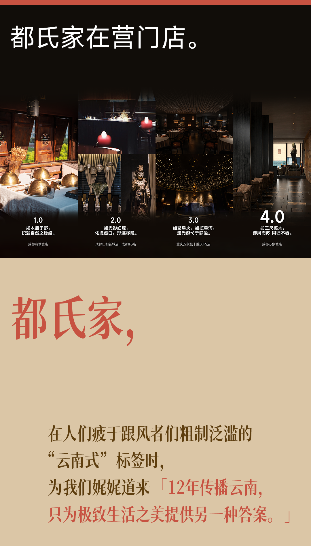 “二当家”承载一股江湖气,这个时期更侧重云南特色的呈现与市场认知建立;而来到“家”的阶段,是都氏家沉淀12年后必然的归巢,把云南的精神内化为一种可感知、可体验、可归属的现代生活方式提案。