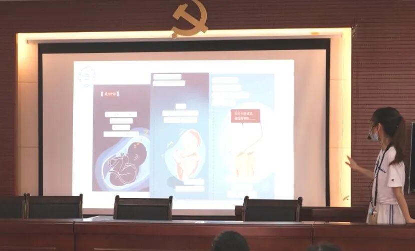 首先进行的是母亲节专题科普讲座,乐育书院2021级学前教育专业的陈梓函同学以视频讲解、图文介绍等形式,结合趣味游戏,生动地讲述了母亲从怀孕至生产的全过程,普及了母亲十月怀胎的生理知识,展现了母亲生产过程中的艰辛及母爱的伟大之处。在讲座的中场,陈梓函同学也邀请了在场的两位母亲表达了她们在怀孕过程中的感受和对怀孕到生产这一艰辛过程的看法,在她们看来,怀孕的过程是艰苦的,会给身心带来很大压力,但是想到肚子里孕育的小宝宝,便又觉得充满力量。母亲们对子女的爱能够超越辛劳和痛苦,感动了在场的孩子们和实践队成员。