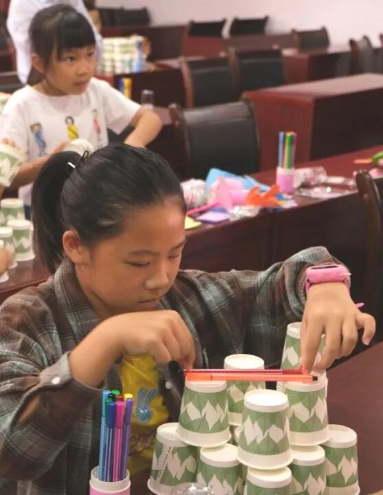 在活动过程中,孩子们展现出了极强的动手能力与协作能力,一个个复杂纸杯模型一眨眼功夫便被搭建了出来。通过该活动,孩子们增强了观察图像、理解图像、复现图像的空间思维能力和动手能力,同时收获了满满的乐趣。