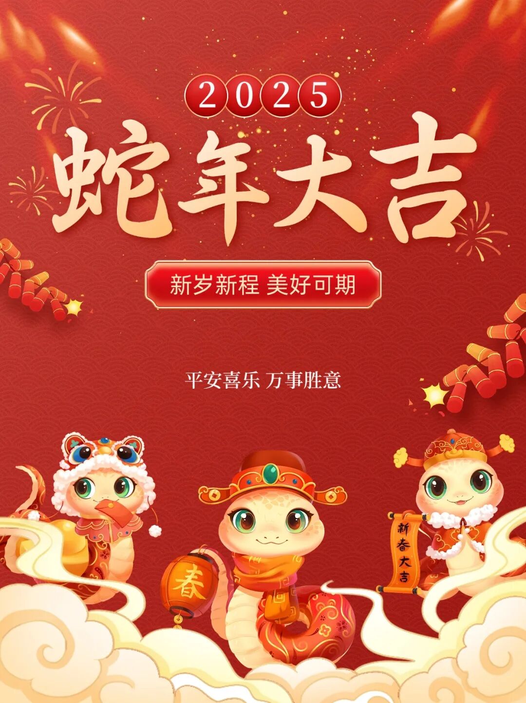 乙巳蛇年迎春来,灵蛇献瑞乐开怀。