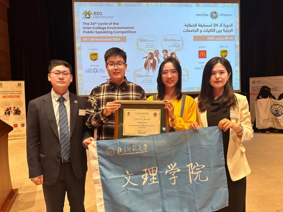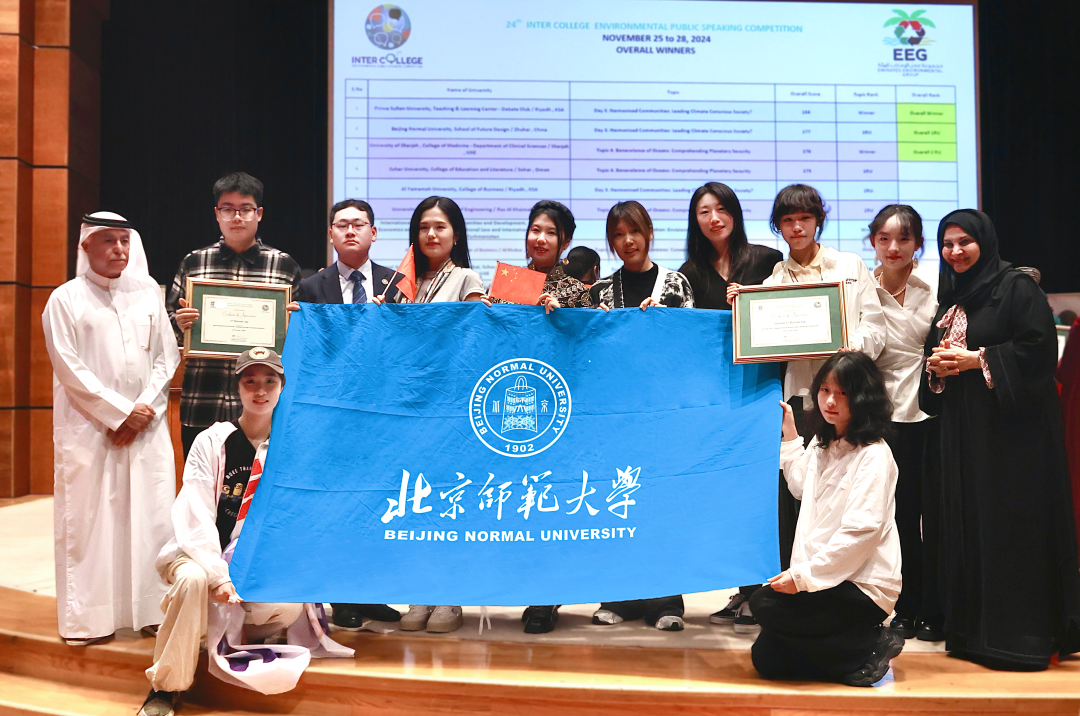 11月27日,由阿联酋环境集团(EEG)主办的第24届国际高校环保演讲大赛在阿联酋迪拜举行。由北京师范大学文理学院和未来设计学院师生组成的北师大代表团在此次大赛中表现突出,荣获总分第二的优异成绩。