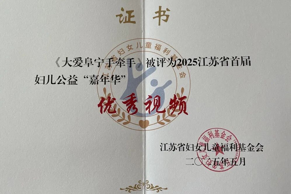 5月,慈济基金会作品《大爱阜宁手牵手》,获评江苏省妇儿会首届妇儿公益“嘉年华”优秀视频。