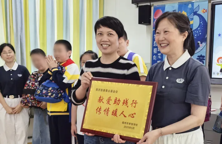 5月30日,志工受邀参加福州育智学校“粽情六一·童享端午”端午活动,向20位孩子送上新文具、新书包。育智学校致赠“献爱助残行·传情暖人心”牌匾。