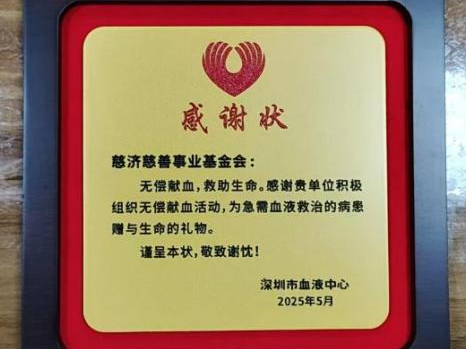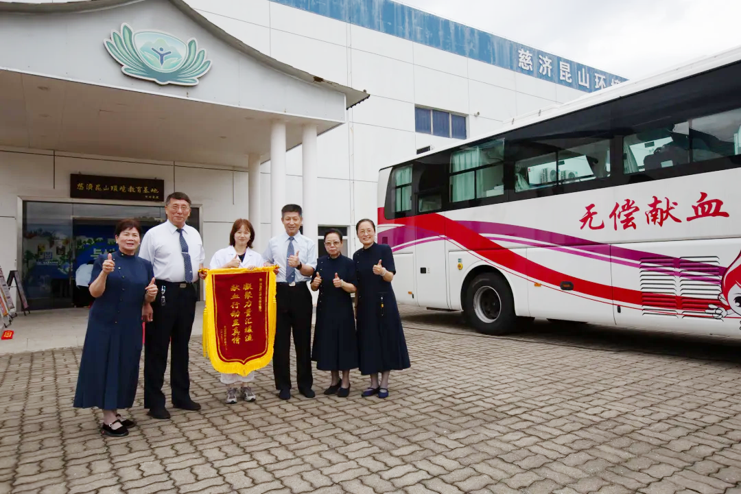 6月15日,昆山市中心血站致赠慈济基金会“凝聚力量汇暖流 献血行动显真情”锦旗。