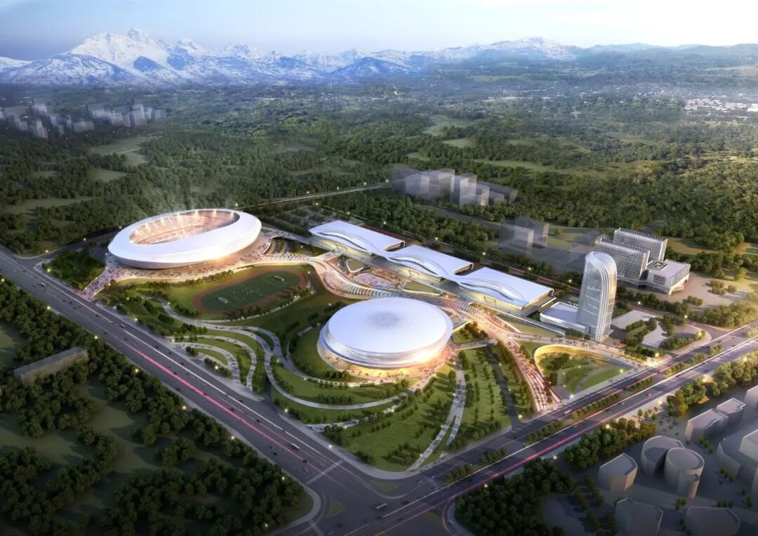 项目由体育场、综合体育馆、全民健身馆、游泳馆、田径馆及星级酒店等建筑群组成,总建筑面积约30.5万平方米,兼具公园、商务、居住等功能,是新疆维吾尔自治区和乌鲁木齐市两级重点工程项目。