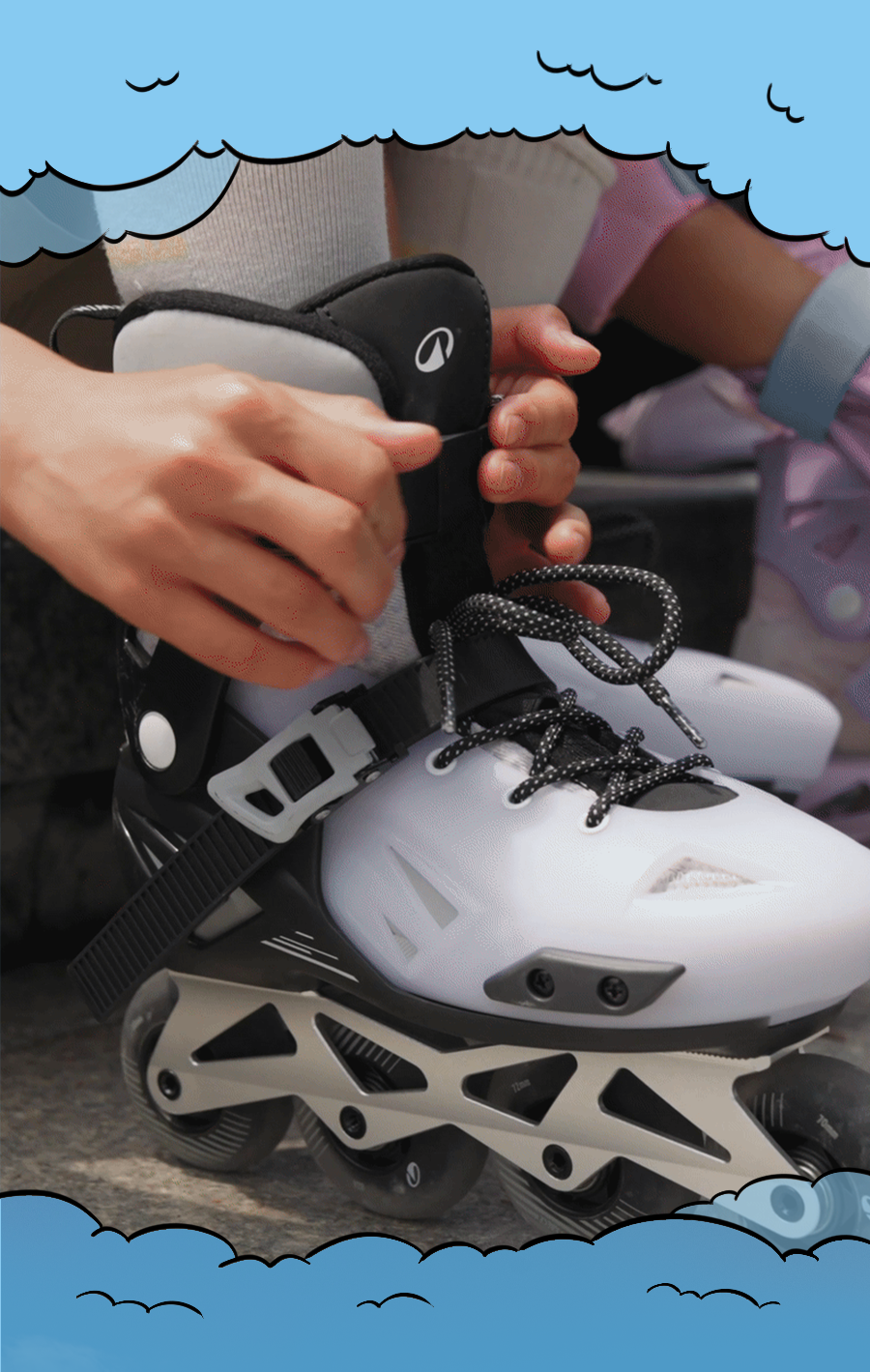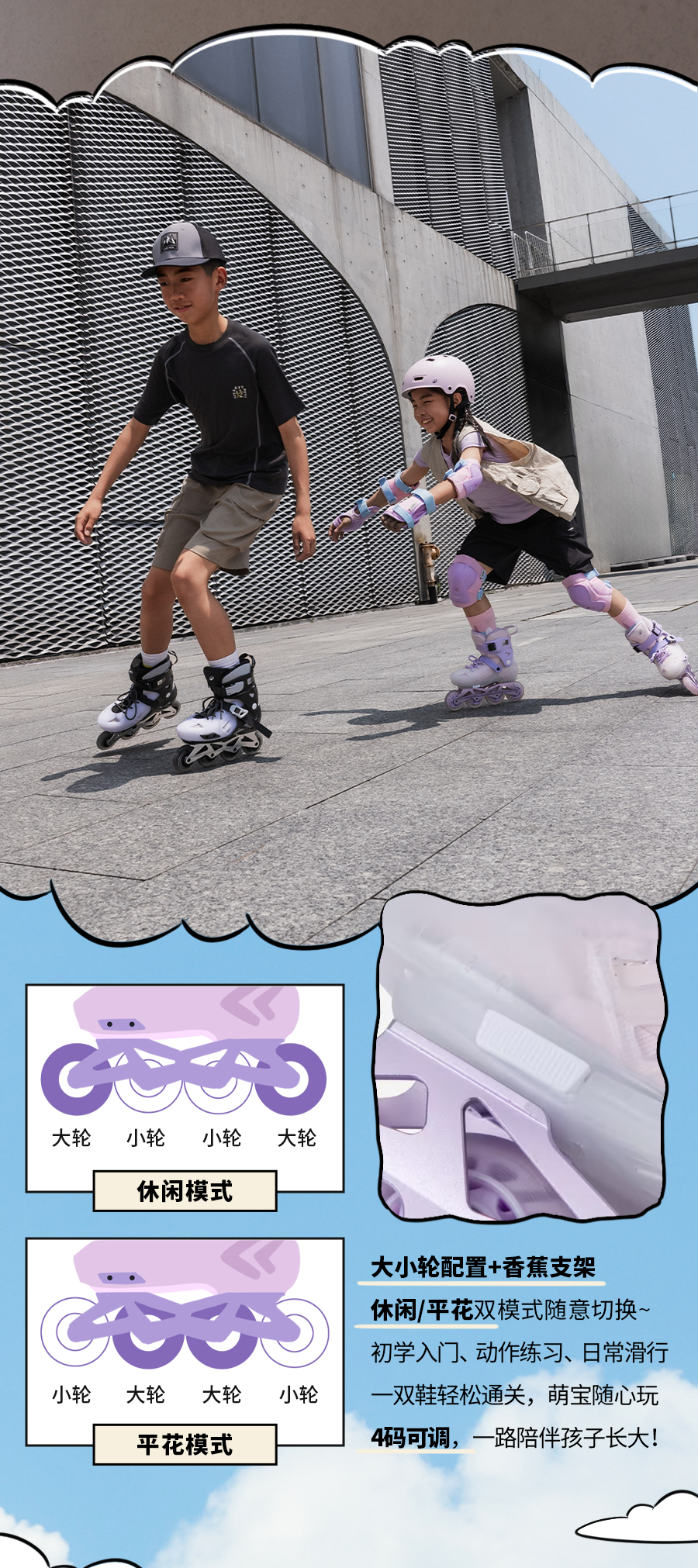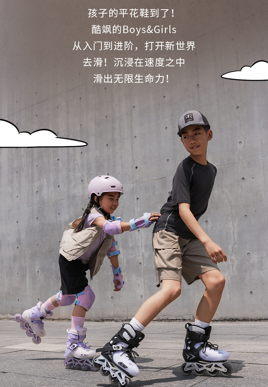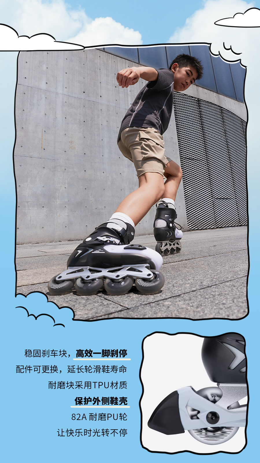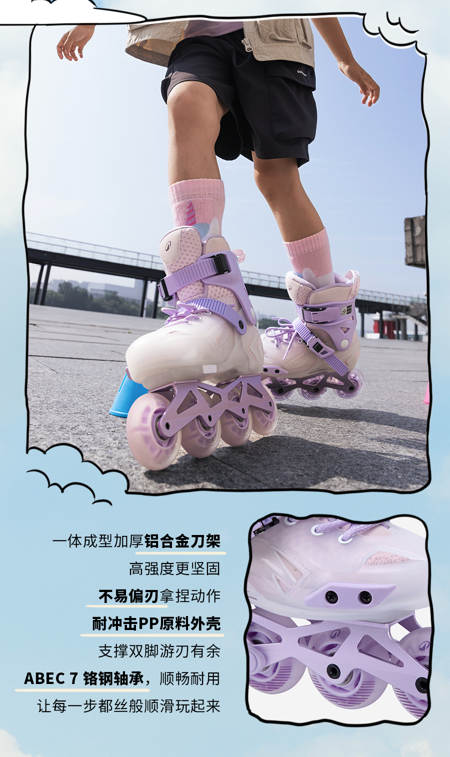 ④单脚平衡与转向:单脚滑行是平花高难度动作的基础。孩子可先练习“抬一只脚滑直线”,再尝试用单脚内刃/外刃绕小弯。从5秒坚持逐步提升,增强脚踝力量。