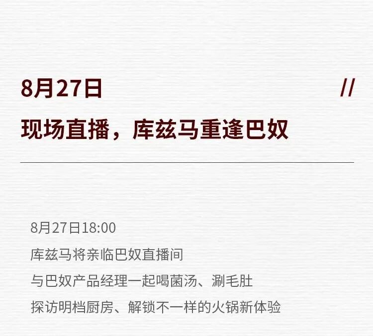 文章内容来源于公众号:巴奴毛肚火锅,点此可查看原文,内容版权归相关企业所有,本网站仅供交流学习。若涉及版权问题或存在侵权情况,请及时与我们联系,我们将第一时间进行删除处理。