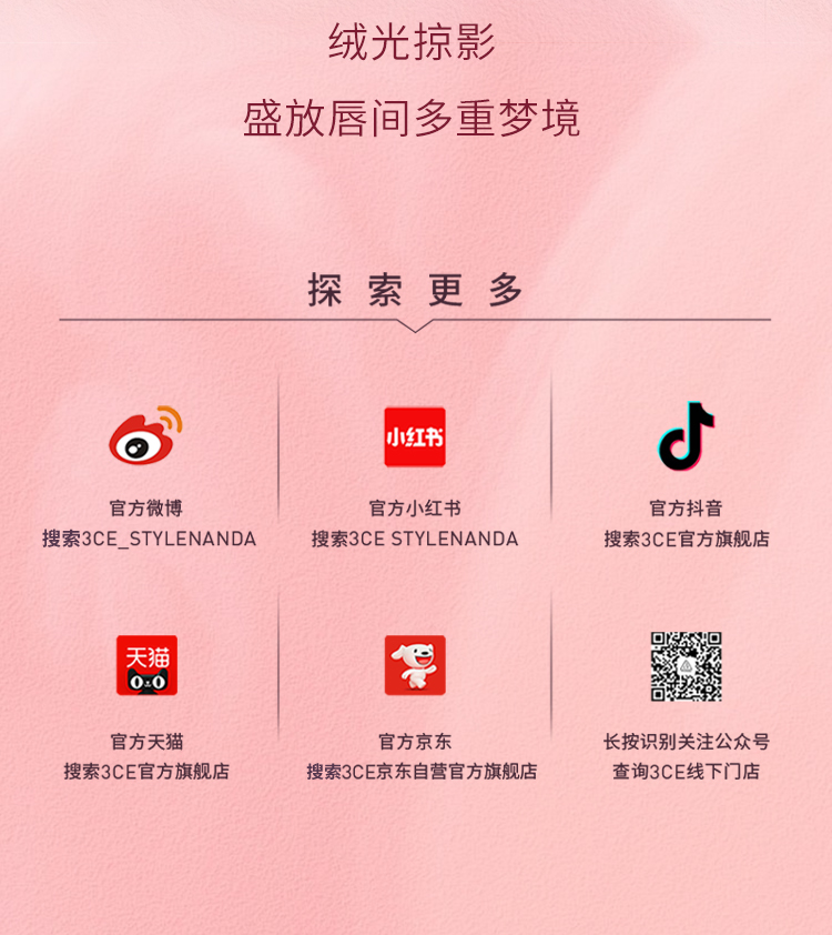 文章内容来源于公众号:3CE STYLENANDA 官方,点此可查看原文,内容版权归相关企业所有,本网站仅供交流学习。若涉及版权问题或存在侵权情况,请及时与我们联系,我们将第一时间进行删除处理。