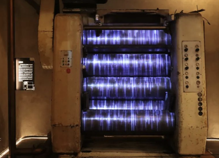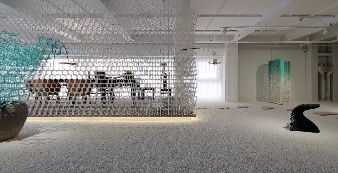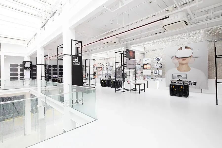 走进博物馆,整体的空间由充满空气感与未来感的“虚山水”系列装置贯穿,纯粹、白色的背景与充满岁月感的工业旧物产生了虚拟与真实,未来与历史之间的强烈对比。