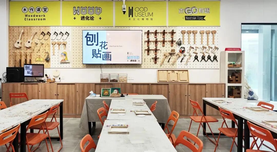 来到这,千万别错过了这里的互动体验区哦!在这里,家长可以带着孩子动手尝试一些简单的木工制作,包括非遗竹编风铃、榫卯板凳制作、木制机器人摆件、尤克里里制作等等。在动手制作的过程中,孩子们能更深入地学习木文化知识,亲身感受木材的质感与魅力,从而激发对自然与艺术的无限热爱。