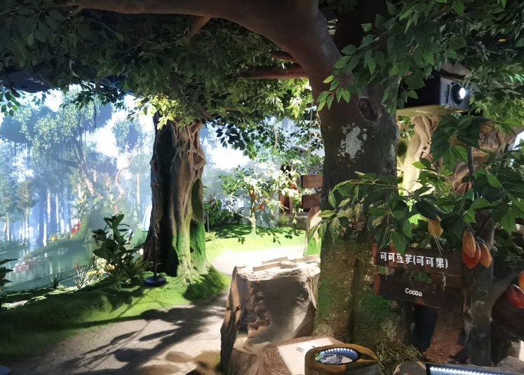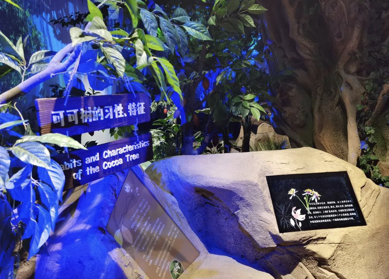 走进展厅【可可丛林】、【历史的回眸】,会发现全息投影、互动装置真实地还原了从赤道热带雨林中可可果的初绽芳华,到古老玛雅文明里将可可豆奉为“神之食物”的神秘仪式,再到近代中国沿海通商口岸初遇巧克力时的好奇探索、上海滩名流雅士间风靡一时的精致巧克力社交风尚等鲜活场景。