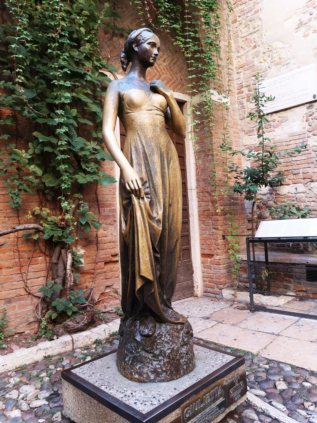 这次来维罗纳,对我来说最重要的事就是去参观朱丽叶的故居,和戏剧里最经典一幕的发生地——朱丽叶家的阳台。趁着一早开门人还不算太多,我来到了这个14世纪的石头宅院。庭院里立着朱丽叶的铜像,传说摸一摸她的右胸可以收获爱情好运,因此雕像上那部分早已被磨得锃亮。最吸引人的无疑是阳台,虽然是后人修建的,但当我仰头望去,很容易想象罗密欧在夜晚呼唤朱丽叶名字的场景。