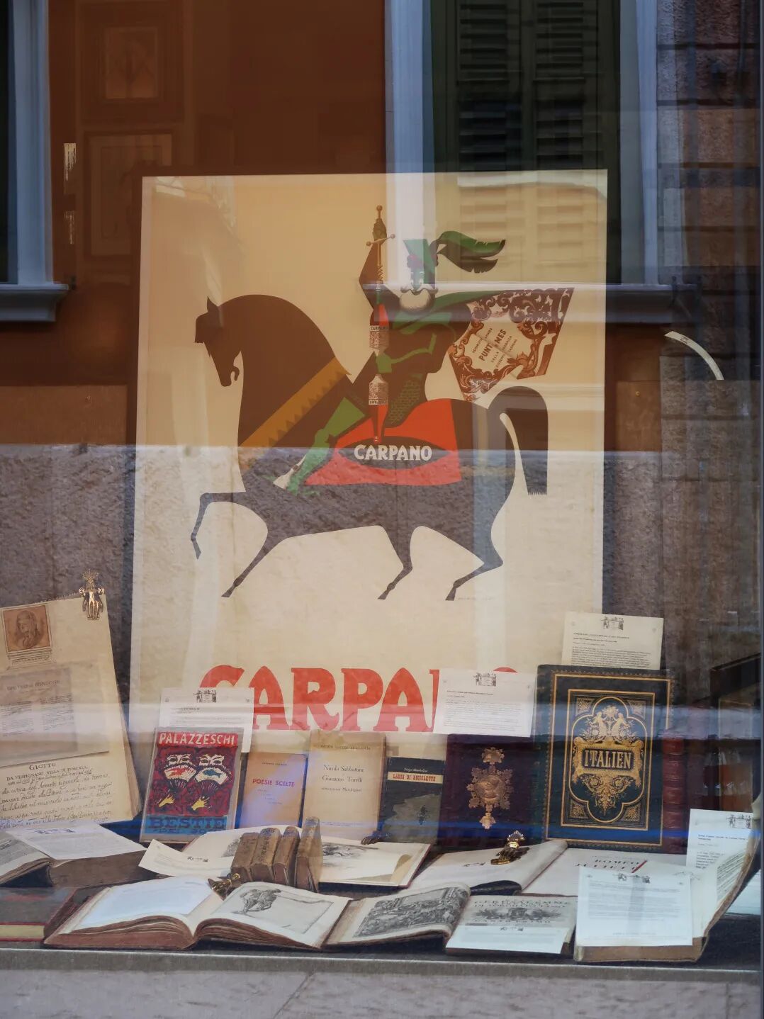 有时候会传来清脆的自行车铃声,或者从当地人家飘出的做饭香气,路旁还会藏着很多低调的宝藏小店,比如一家名叫“Libreria Antiquaria Veronese”的珍本书店。橱窗里摆放着泛黄的书籍,推门而入,空气里是纸张与墨水的味道,中古立柜上摆着各种地球仪和装饰画,在书架上甚至能淘到旧版的莎士比亚剧本。不过这家书店也像小城一样松弛——每天中午会有长达3个小时的闭门午休(12:30-15:30)。