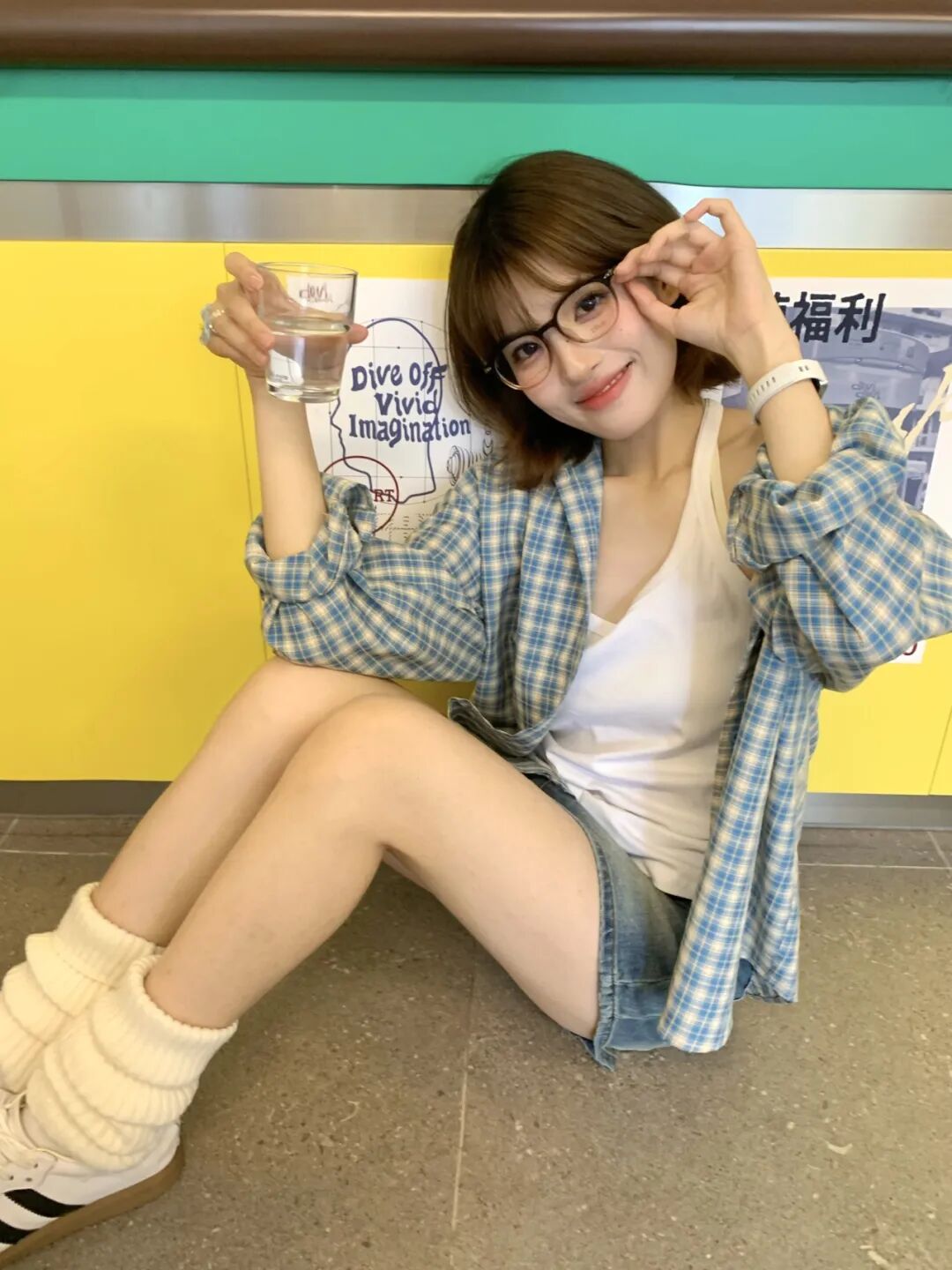 同样是具有初恋感的代表,张元英的穿搭则是更有酷感的代表,不得不说她简直是MIUMIU的“天选之身”,少女感中带一丝不拘的酷,甜而不腻。