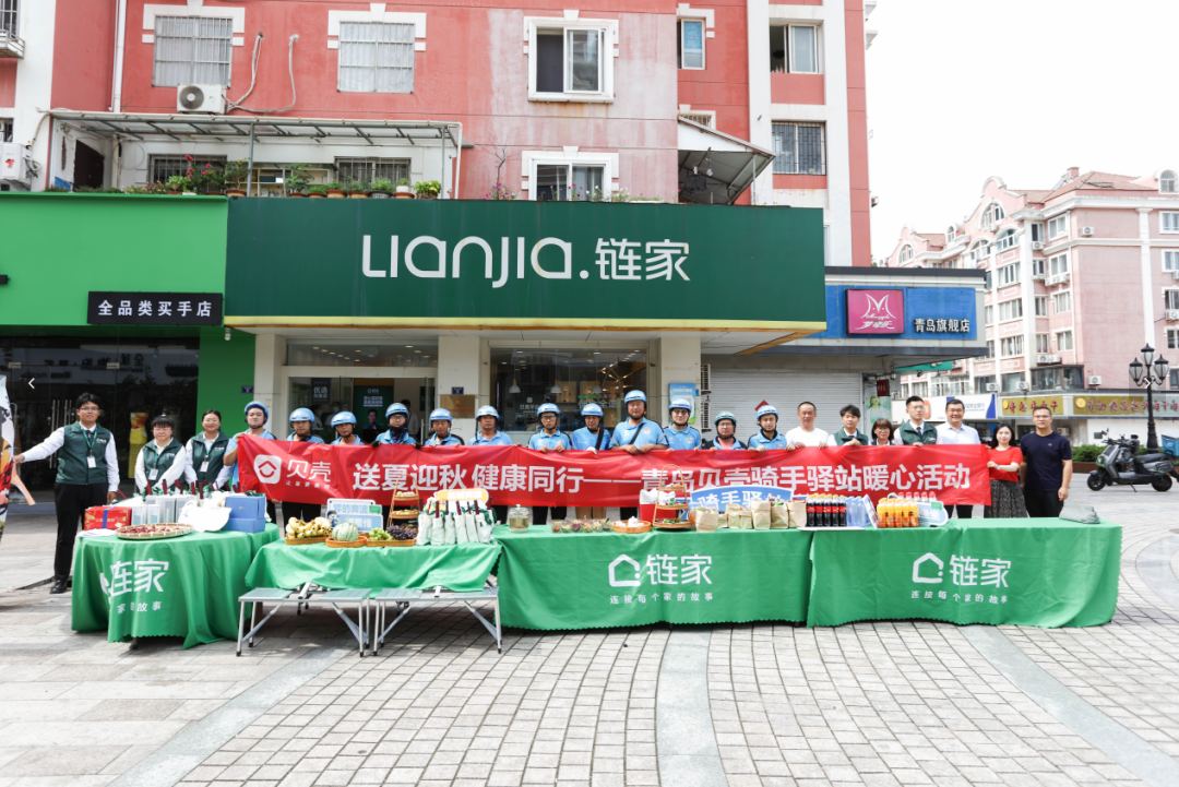 8月28日上午,青岛市北区委社会工作部、台东街道党工委与贝壳共同举办的“送夏迎秋 健康同行 —— 新就业群体关爱活动”在链家台东步行街店暖心启幕,现场组织了丰富多彩的健康养生关爱活动,房产经纪人志愿者给外卖骑手、快递员发放了福利礼包。此次活动,是青岛贝壳 “骑手驿站” 公益项目的延伸,是对新就业群体的贴心守护。