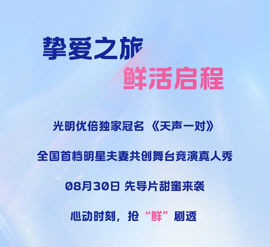 摘要:今晚21:10 光明优倍浙江卫视《天声一对》先导片开播