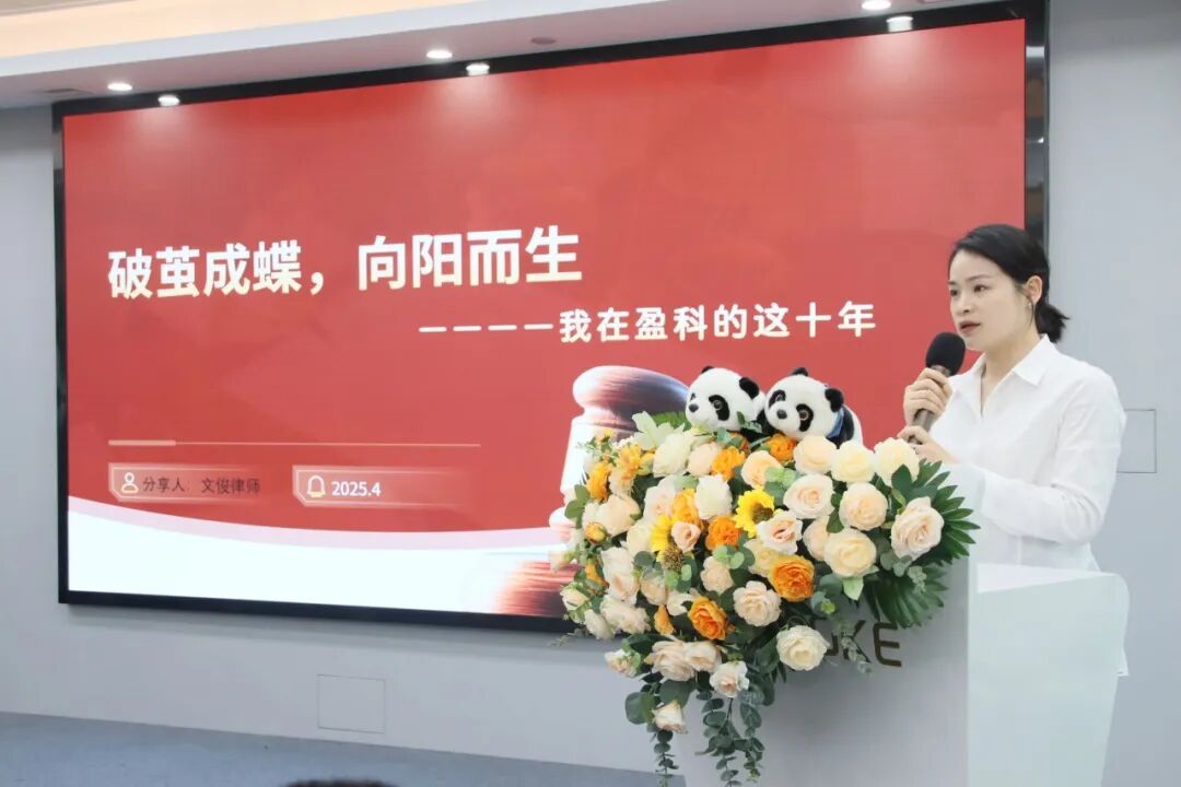 文俊律师以《破茧成蝶,向阳而生》为题,阐述了自己在盈科的十年时光,一名女性法律人从青涩到成熟的蜕变历程。十年间,她不仅获得了职业成就,更拥有了法律思维和实务能力。未来,愿所有在法律道路上跋涉的女性,都能在坚守中柔软,在锋利中慈悲,在见证无数人生故事的同时,也书写出属于自己的精彩篇章。