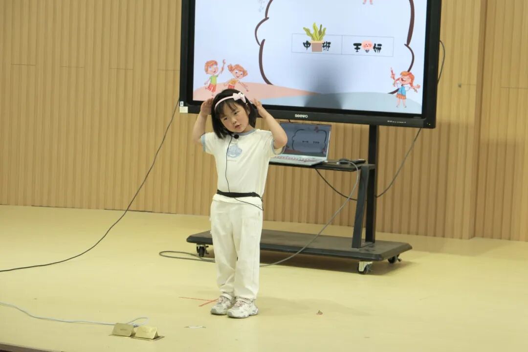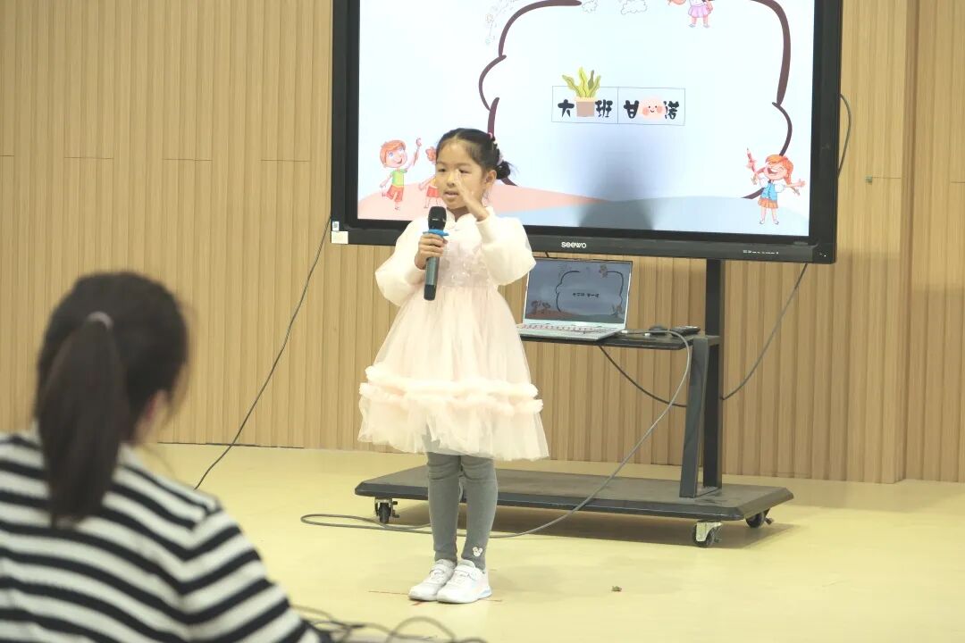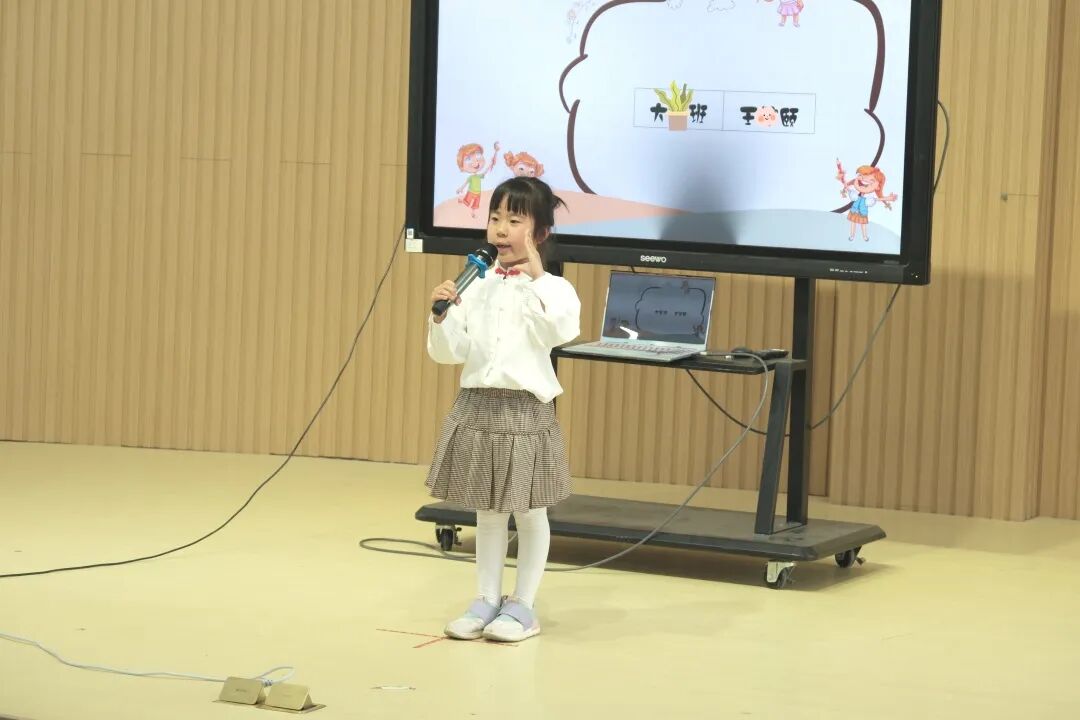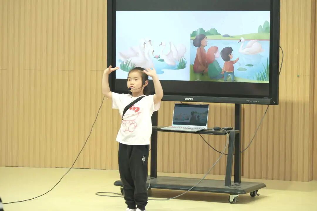 新幼的孩子们一点儿也不怯场,他们以最纯真的情感、最萌趣的动作讲述着最动人的故事。小选手们个个精神气十足,满心期待着这场故事盛宴。