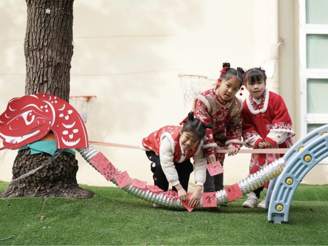 孩子们穿着喜庆的服装,带着新年的祝福,踏入了幼儿园。在“蛇年摄影留念”打卡点,孩子们在这里留下了新学期的第一张照片,记录下这美好的时刻。