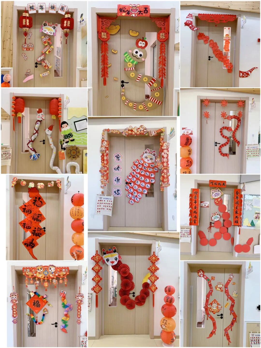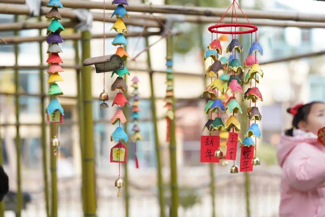 老师和孩子门一起精心布置的蛇年主题大门也成了校园里最吸睛的风景。