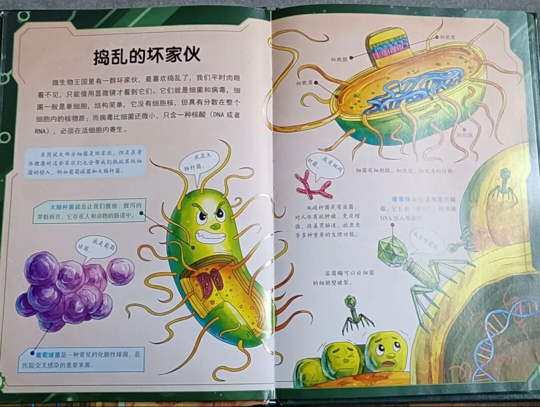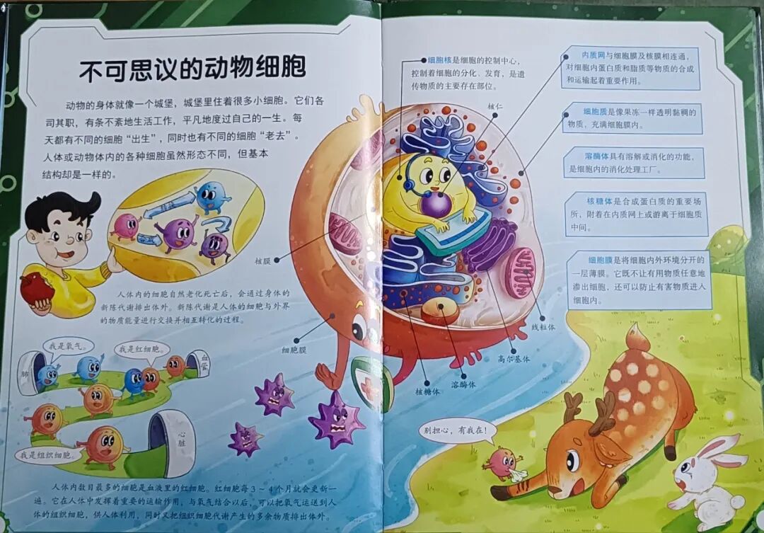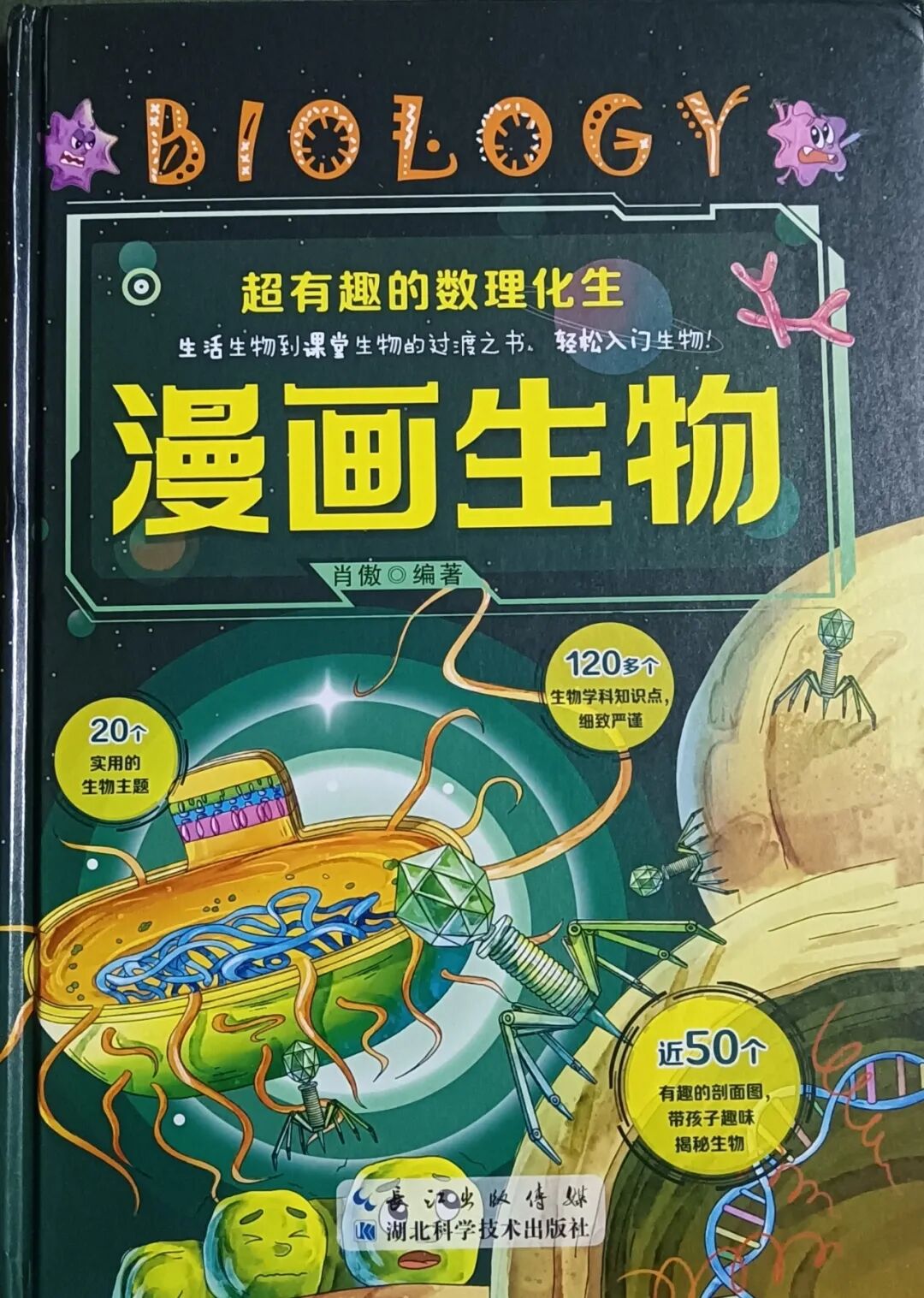 亲爱的小朋友们、大朋友们你们好呀!我是大三班的文伯。今天我要推荐书籍是《漫画生物》,它是《超有趣的数理化生》系列中的一本,这是一本从生活生物到课堂生物的过度之书,可以帮助孩子们轻松入门生物。