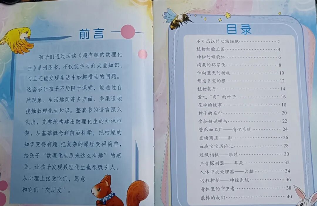 这套书能让孩子们通过自然现象、生活趣闻等多方面、多渠道的接触数理化生知识。通过精美的插图和深入浅出的表达,把枯燥的知识变有趣,把复杂的原理变简单,给孩子们“原来学习这么有趣”的感觉。