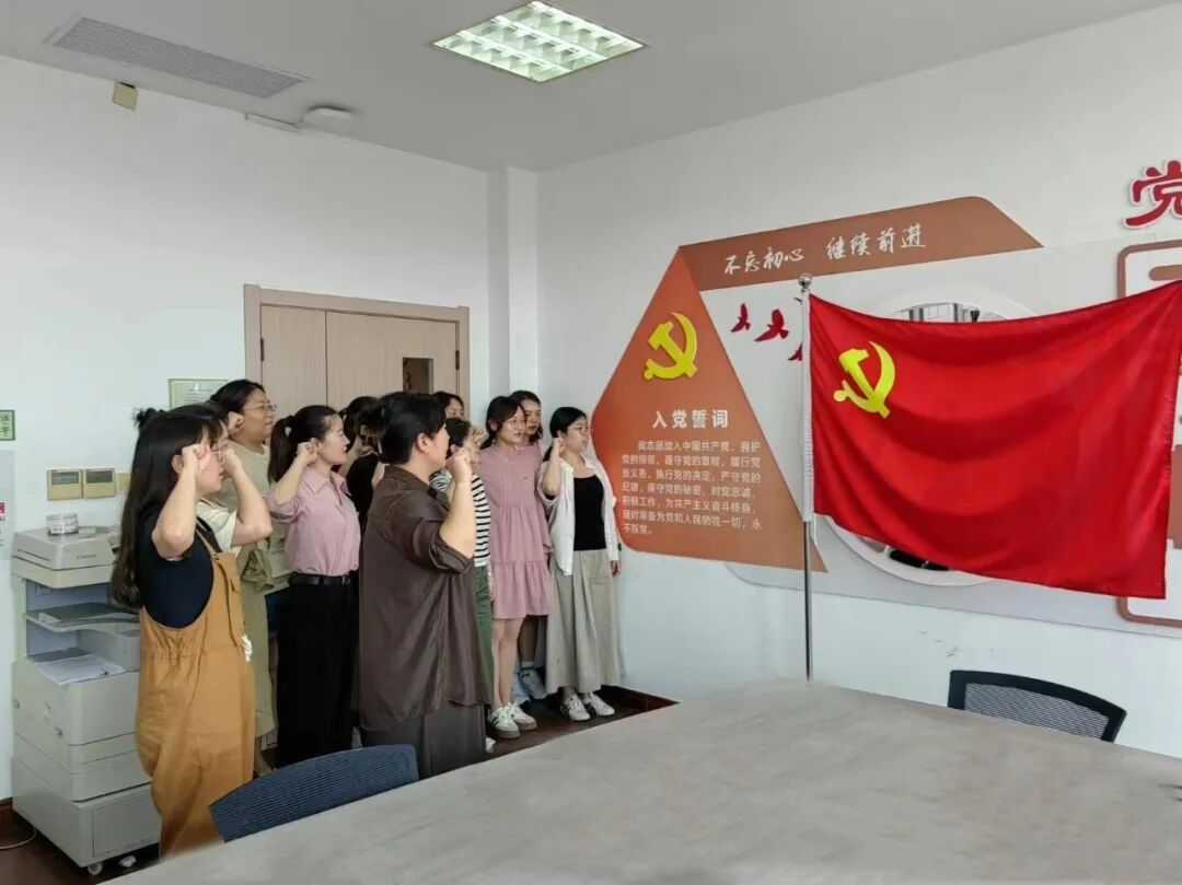 为纪念中国共产党建党103周年,激励广大党员坚定理想信念,不忘初心、牢记使命,增强党组织的凝聚力和战斗力,在七一建党节之际,支部书记吴蕾同志带领全体党员重温入党誓词。