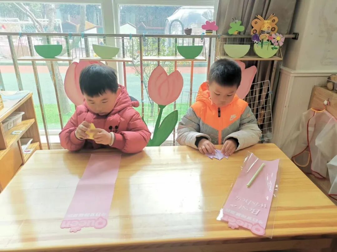 在这个充满爱和温情的节日里,新幼宝贝们用自己灵巧的小手制作礼物送给女神!瞧,一双双稚嫩的小手正忙活个不停,宝贝们认真地为家中的女神们制作礼物呢!