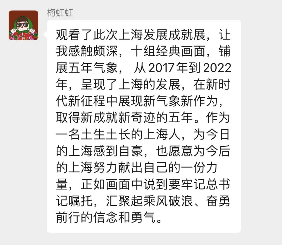 全体党员同志(发展对象、积极分子)自主观看了由市委宣传部、市委党史研究室、市发改委共同主办的“新时代 新奇迹·2017-2022”上海发展成就展,云端观展让党员同志们感受到了上海这5年的变化,纷纷表示将会一如既往地从自身岗位做起,从服务身边人做起,为上海的未来五年十年而继续努力。