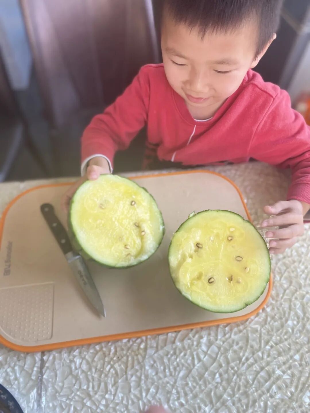 妈妈给宝宝切西瓜