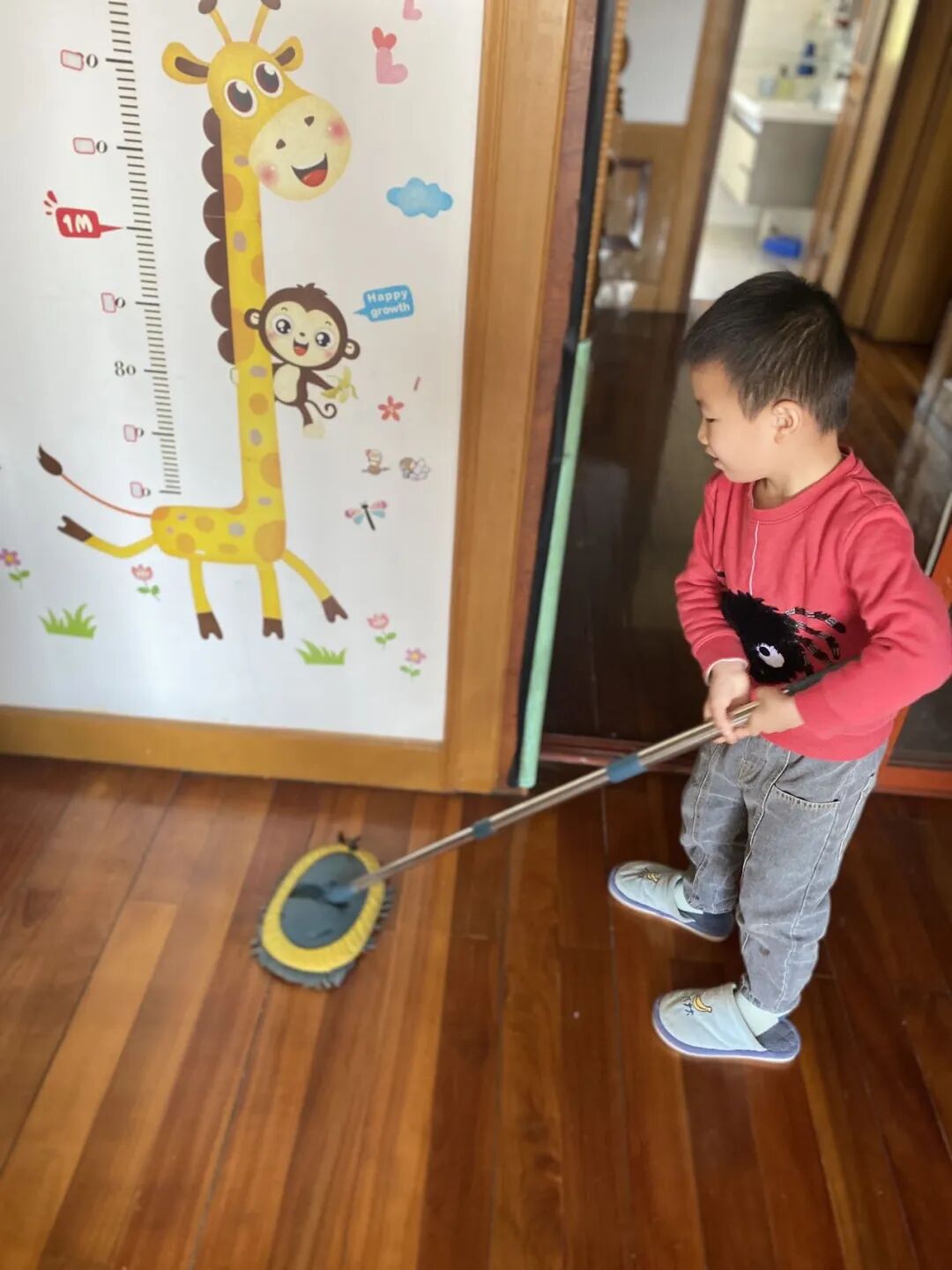 我今天当妈妈扫地了,还去洗碗,擦桌子了~