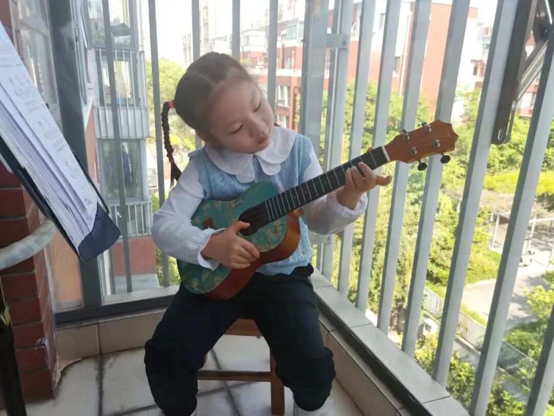 教宝宝弹吉他。