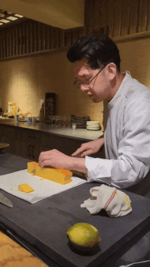 一碗味噌汤(Saikyo Miso)“溜缝”之后,来到今晚Omakase盛宴的彩蛋环节,今晚的美好以双倍的甜蜜幸福收尾。