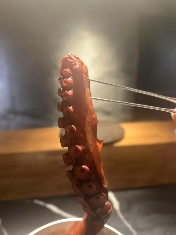 讲真,小编被这道菜的味道给香迷糊了。入口软中带韧,浓郁鲜美沁在墨鱼脚的纹理中,既有酱香又不失海鲜本味,每一口都有回甘。点缀在顶端的黄瓜碎,夏日的清爽扑面而来。
